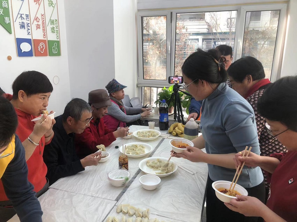 活動中,11名居民群眾、社區(qū)工作人員和集團(tuán)公司志愿者們一起切菜剁餡,一起包餃子、煮餃子,忙得不亦樂乎。當(dāng)熱騰騰的餃子端上桌,大家圍桌而坐,共享香噴噴的餃子,感受著濃厚的節(jié)日氛圍。
