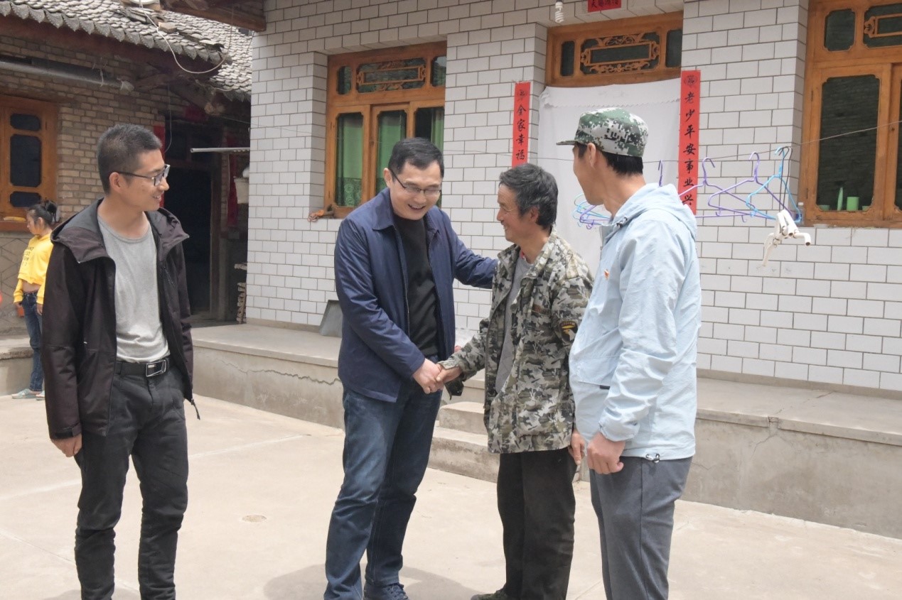 一路上,公司幫扶組人員一起領悟學習習近平總書記有關脫貧攻堅工作的講話精神和如何做好農村工作的思路方法。不知不覺中,車已經駛出高速到達甘谷縣城,我們繼續沿渭河東流方向前行,因前幾天降雨的原因,渭河河水看上去有點渾濁,河面和水量要比我們以前見到的要大。車又行駛了大約七八分鐘后,在一個村道口一拐彎向南駛去,等穿過六峰鎮后,車就已經到了山腳下的甘谷東梁公路。說是公路,其實就是一條農村便道,路面僅能容下兩輛小車會車,整條路彎道多坡度大,如果不是我們已經來了多次,這樣的路對于一個常年在城市街道開車的司機而言,的確有點困難。東梁公路還算好,通往程家窯村的道路就更窄了,路是開鑿在上坡上的,一面靠山,一面臨崖,一輛小轎車通行都顯得有點局促,有些地段的豁口處,我們乘坐的越野車需要把后視鏡收回來才能慢慢通過。在一處較為平緩的平地處,坐落著程家窯村委會,是一院三面有建筑的院落。看到我們來,公司駐村幫扶隊員激動不已。公司幫扶組顧不得旅途勞累,便詢問這次降雨對程家窯村的影響,而且每個人都特別牽掛自己的幫扶對象,并分頭進行了入戶了解。