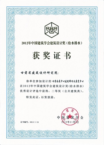 2012年中國建筑學(xué)會(huì)設(shè)計(jì)獎(jiǎng)甘肅會(huì)展中心(給排水)